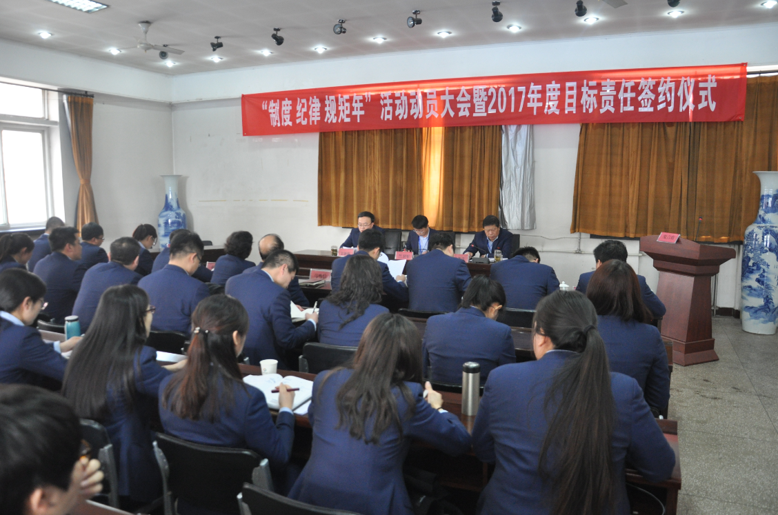 2017年3月10日下午,太原國投集團“制度、紀律、規(guī)矩年”活動動員大會暨2017年度目標責任簽約儀式于大會議室隆重舉行,公司全體領(lǐng)導員工參加了本次會議。